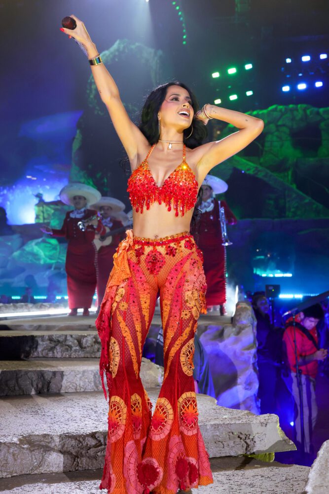 The stunning performer took the stage on the third night to join her friend for their hit track “MAMIII,” and wow, that custom L.O.C.A. ensemble was pure fire.