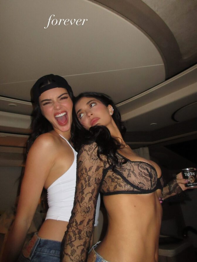 Dressed in a sheer black floral lace top, Kylie showcased her ample cleavage, accentuated by a chic black bra underneath. Her deep neckline made a bold statement, while glimpses of underboob added an alluring touch from various angles. Her low-rise jeans highlighted her toned midriff and curvy silhouette, hugging her figure perfectly.