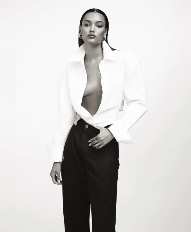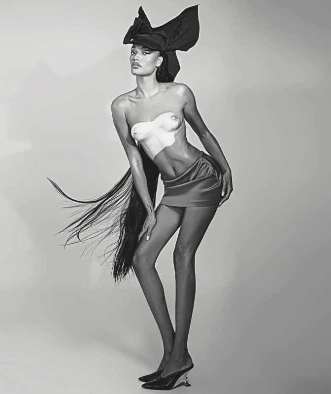 Whether she’s sporting an oversized white shirt that barely conceals her underboob or confidently flaunting her bare torso beneath a chic oversized black bow hat, Lameka Fox truly commands attention in every frame. Her long, toned legs and voluptuous backside are equally celebrated throughout the session.