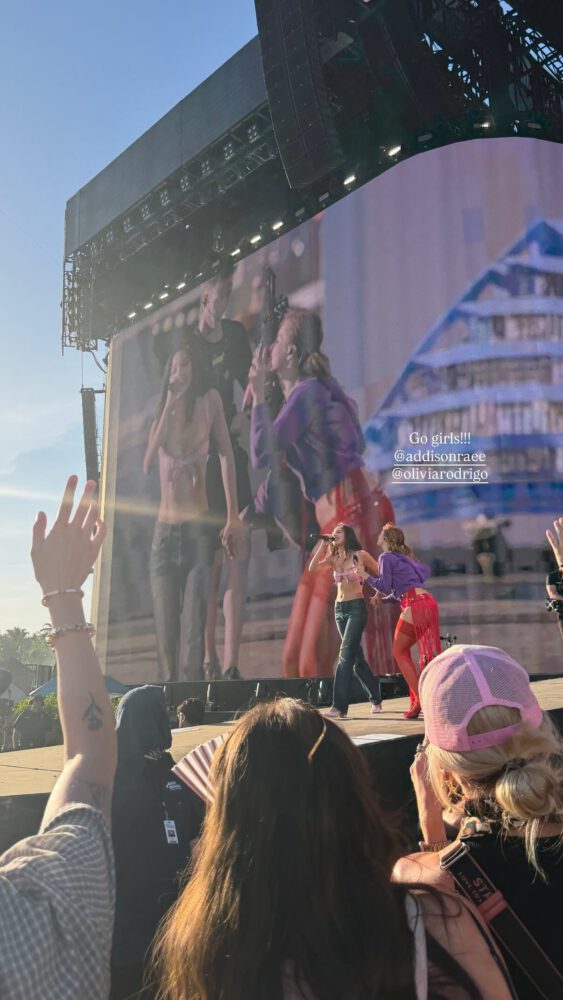 The atmosphere was a blend of sultriness, playfulness, and raw energy, enhanced by the chaotic backdrop of the festival, making her presence even more captivating. One shot of her playfully fanning cash with a cheeky grin? Absolutely sizzling. Olivia Rodrigo rocking that pink bra at Coachella is a moment that will linger in the minds of fans for a long time to come.